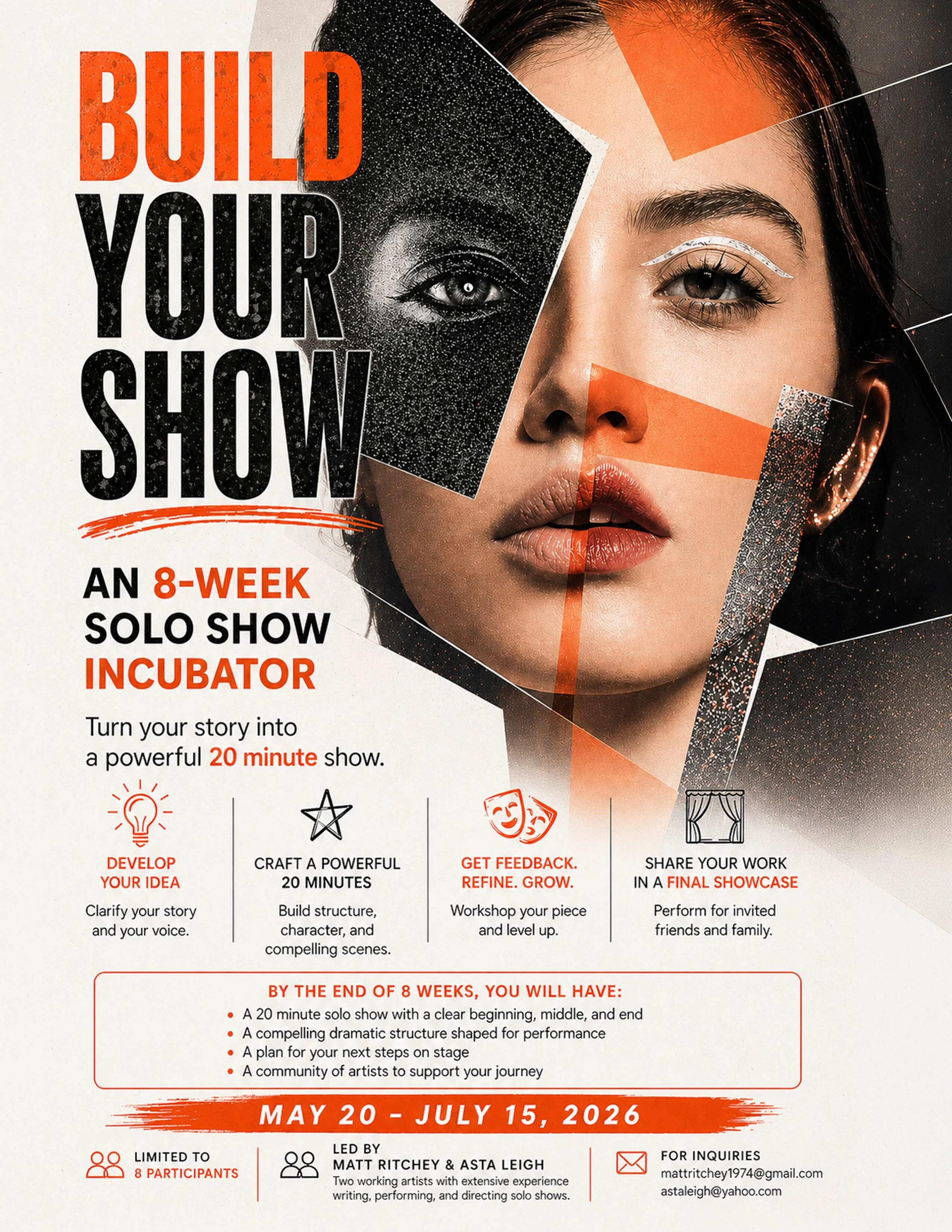 Led by Asta Leigh and Matt Ritchey—two working artists who have written, performed, and directed their own solo work—the class is designed to be hands-on, collaborative, and creatively energizing.